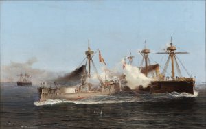 La escuadra chilena logró enfrentar al temido monitor peruano Huáscar, que durante meses había sido la mayor amenaza en el mar. Los buques chilenos Blanco Encalada y Cochrane lideraron la operación, demostrando disciplina y estrategia. El Huáscar estaba comandado por el valiente peruano Miguel Grau, respetado incluso por sus enemigos por su nobleza. El combate fue intenso y decisivo, con maniobras rápidas y fuego constante. Finalmente, el Huáscar fue capturado, marcando un antes y un después en la guerra. Con esta victoria, Chile aseguró la supremacía marítima y pudo continuar sus operaciones con mayor seguridad. La batalla mostró que el mar es un espacio donde el honor existe en ambos bandos. Angamos quedó como un ejemplo de estrategia, respeto y responsabilidad naval.